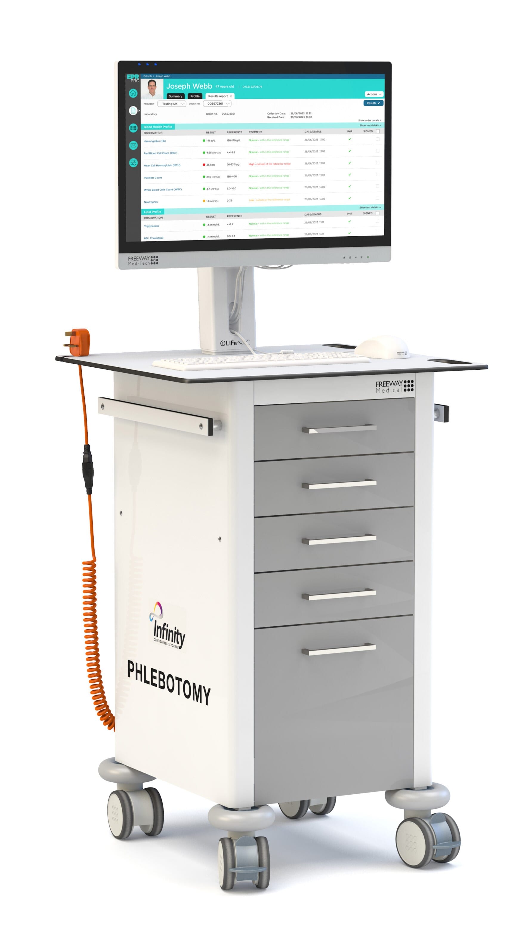 Compact Height Adjustable Vital Signs Workstation Finished in A Choice Of Colours