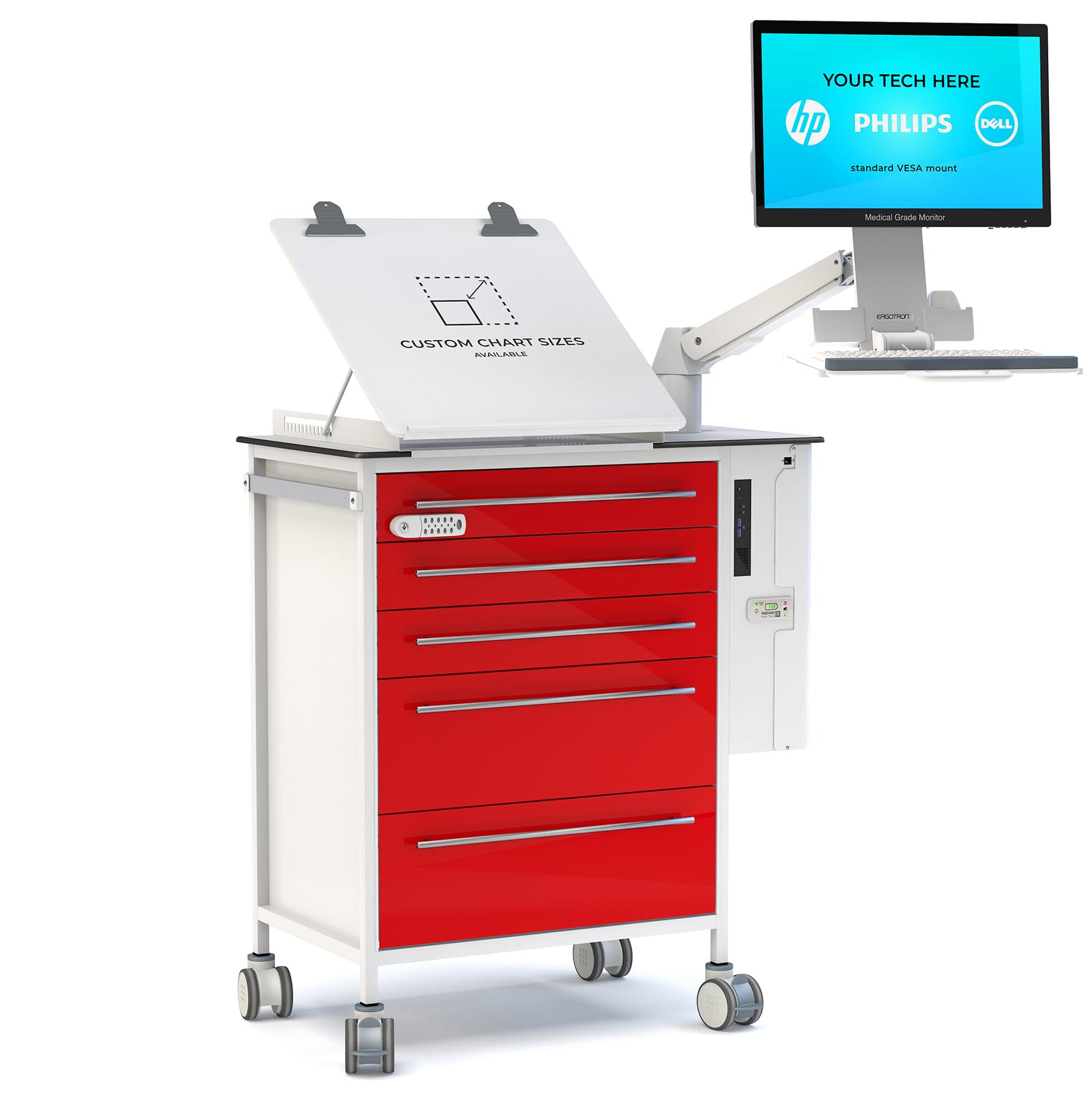 AC Powered Electric Height Adjustable 724 Downtime Computing Cart With Integrated Storage Finished In Red