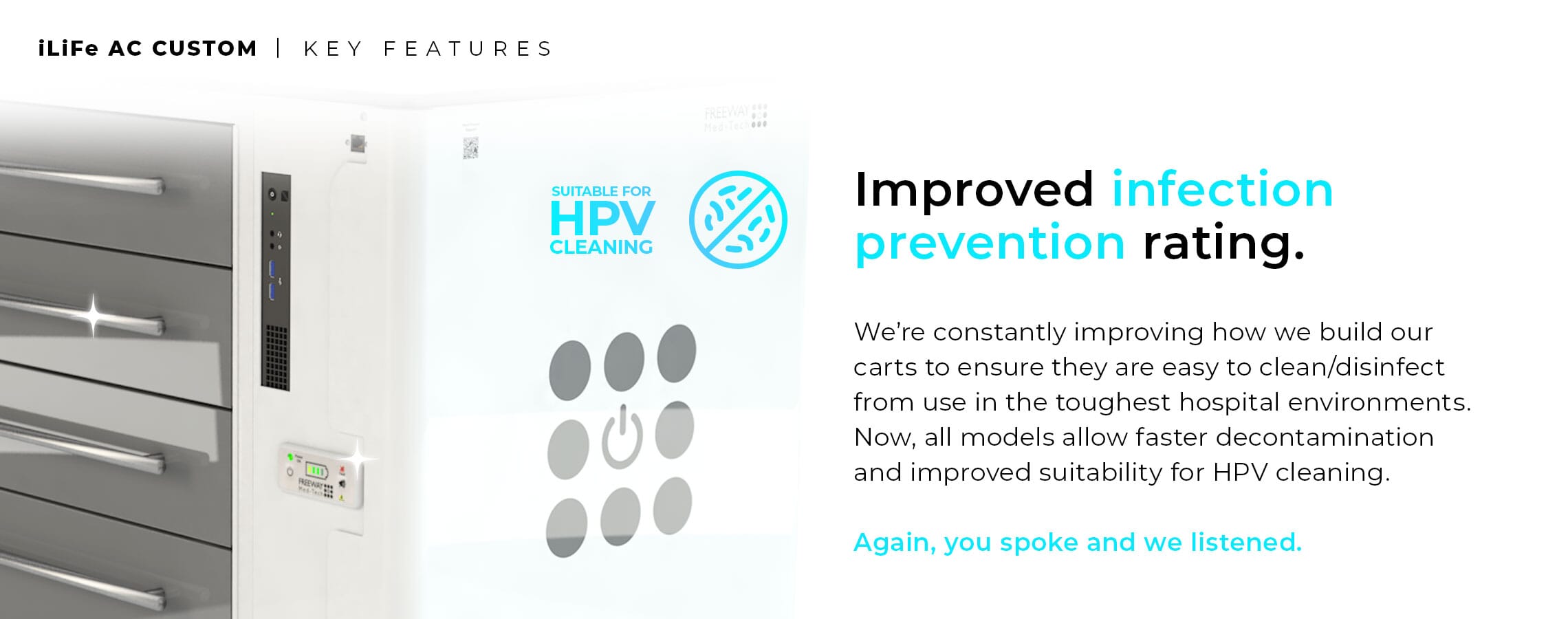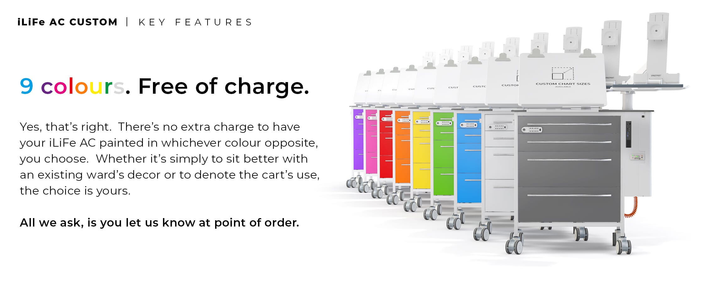 - REMOVABLE REAR ENCLOSED PANEL to suit the Procedure Trolley Frame. This can be removed without fixings to provide fast and effective removable rear access panels – allowing for future replacement or upgrading easily and without the need for tools or engineer site call outs.