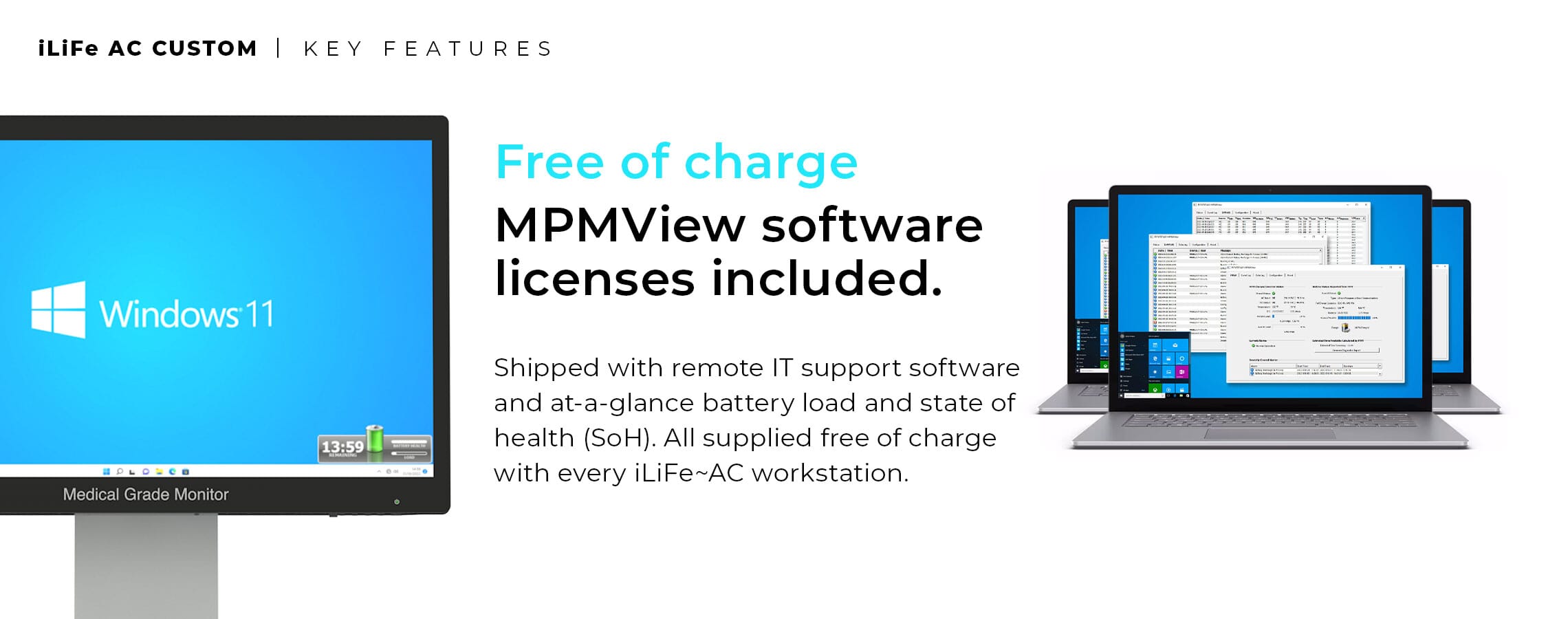 Comes with the MT700 clinical grade monitor with full HD display and Dual DC outs that can power peripheral devices such as Computers and Printers, and includes all cables as well as the 3 x integrated batteries, providing long running times / fast charging and very low cost in years to come to replace the batteries.