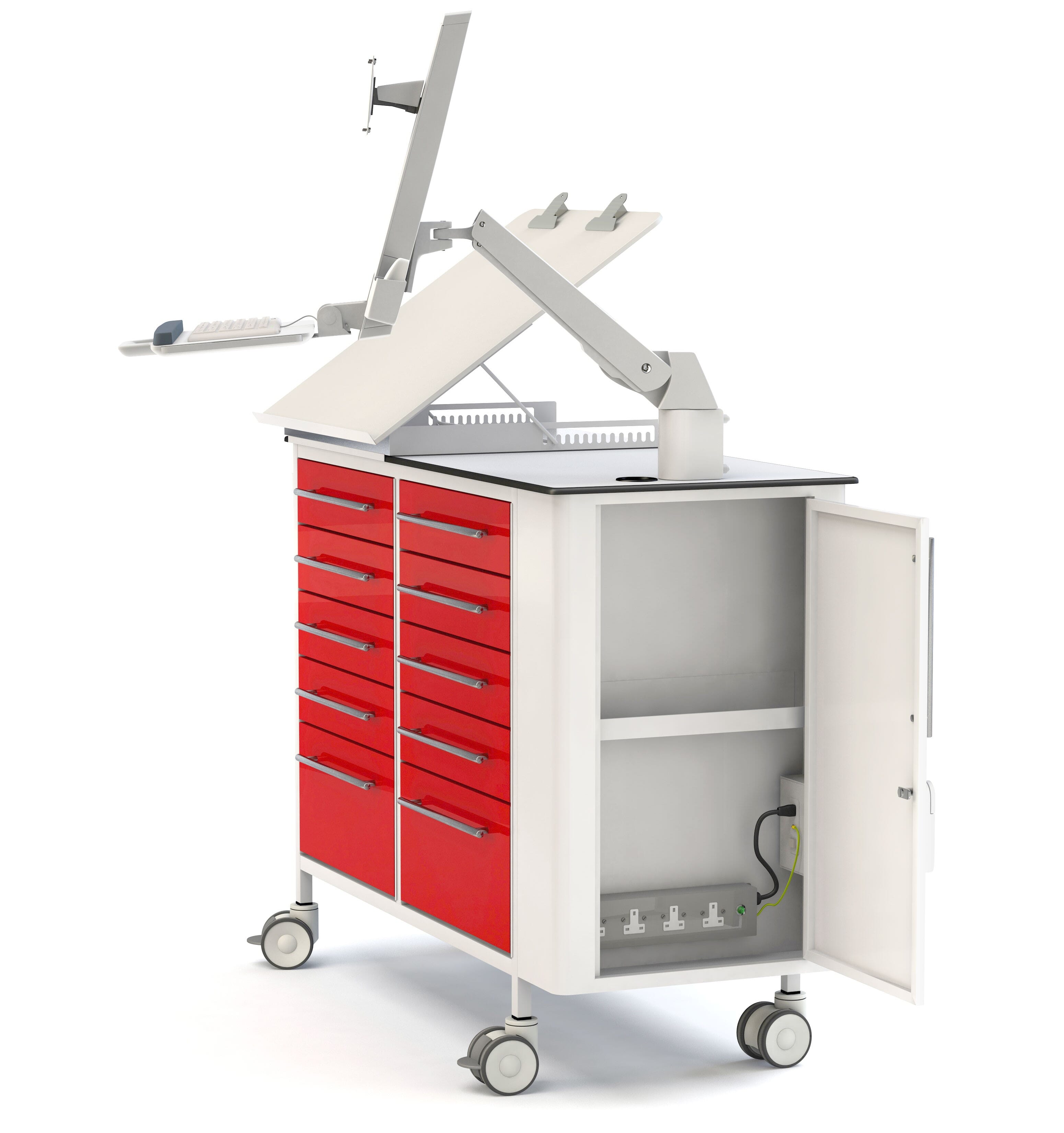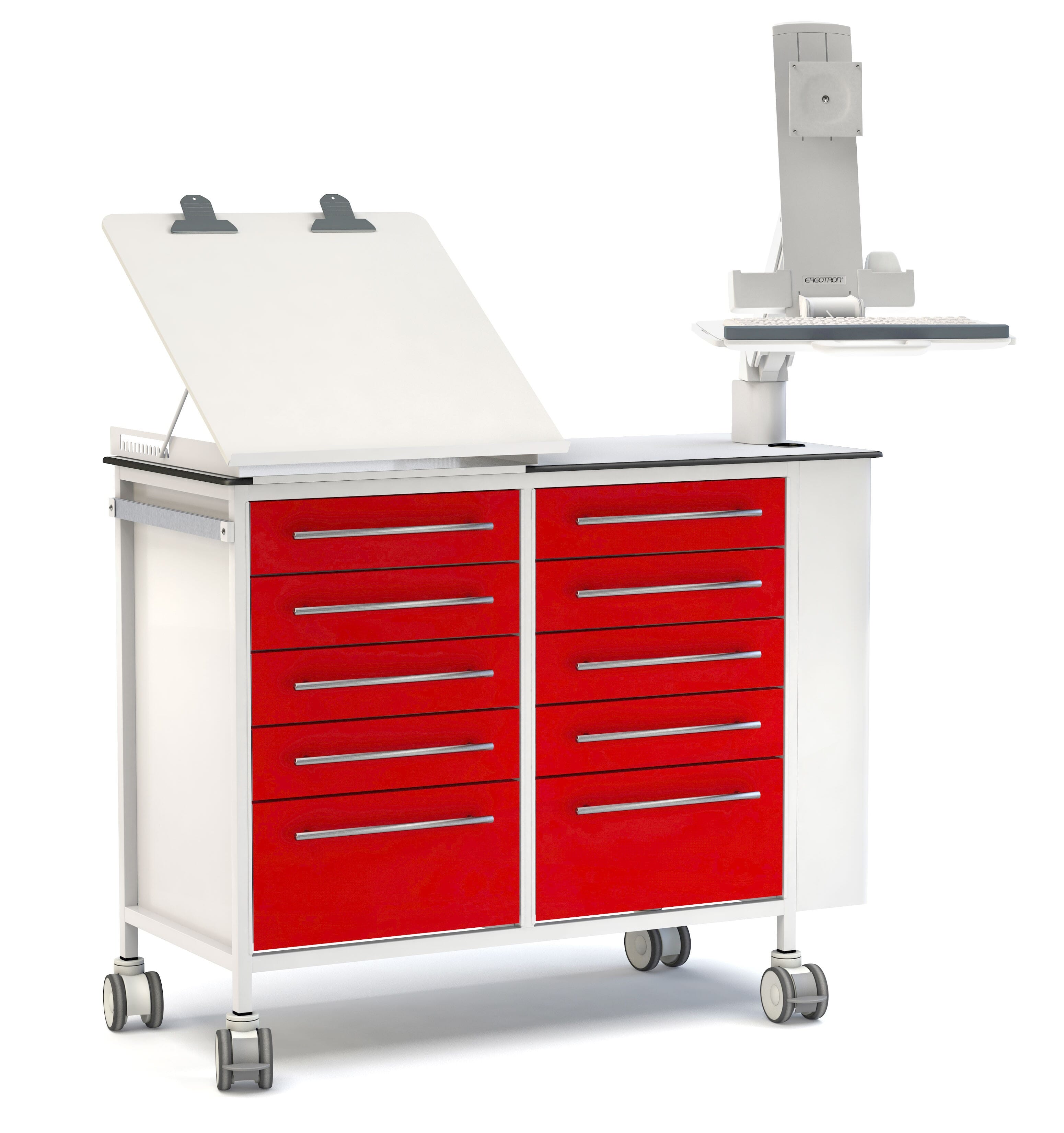 Double Column Custom Configurable Clinical Workstation Finished in Red