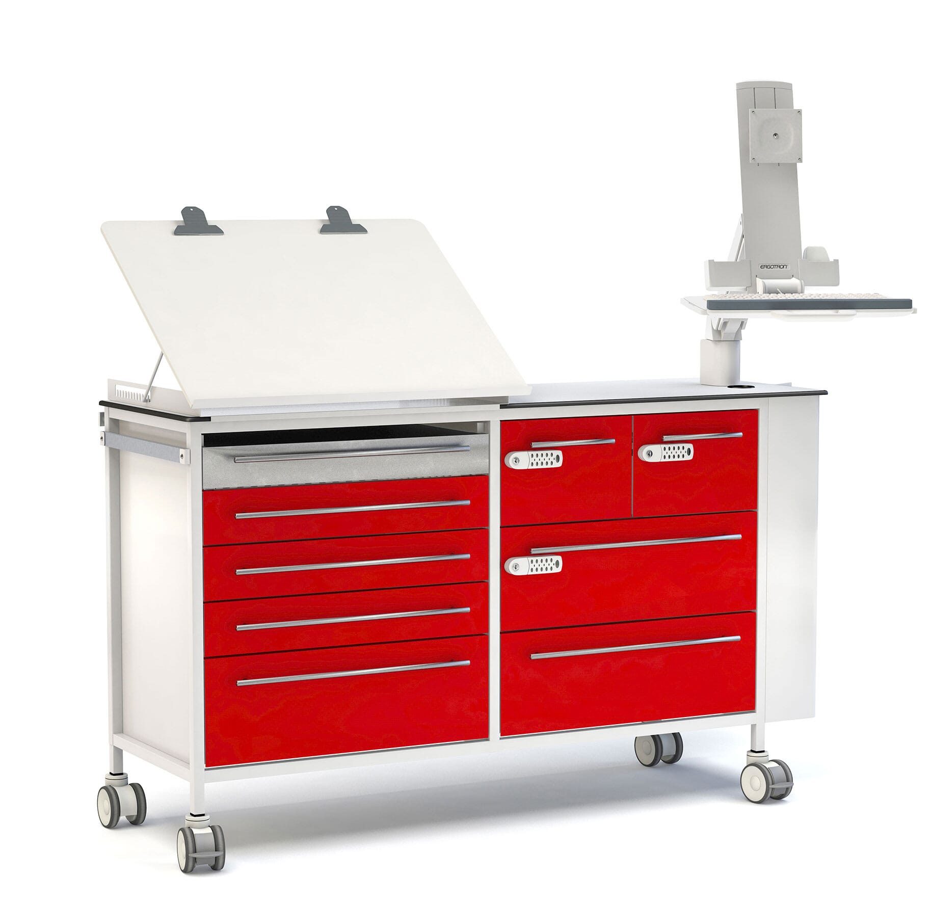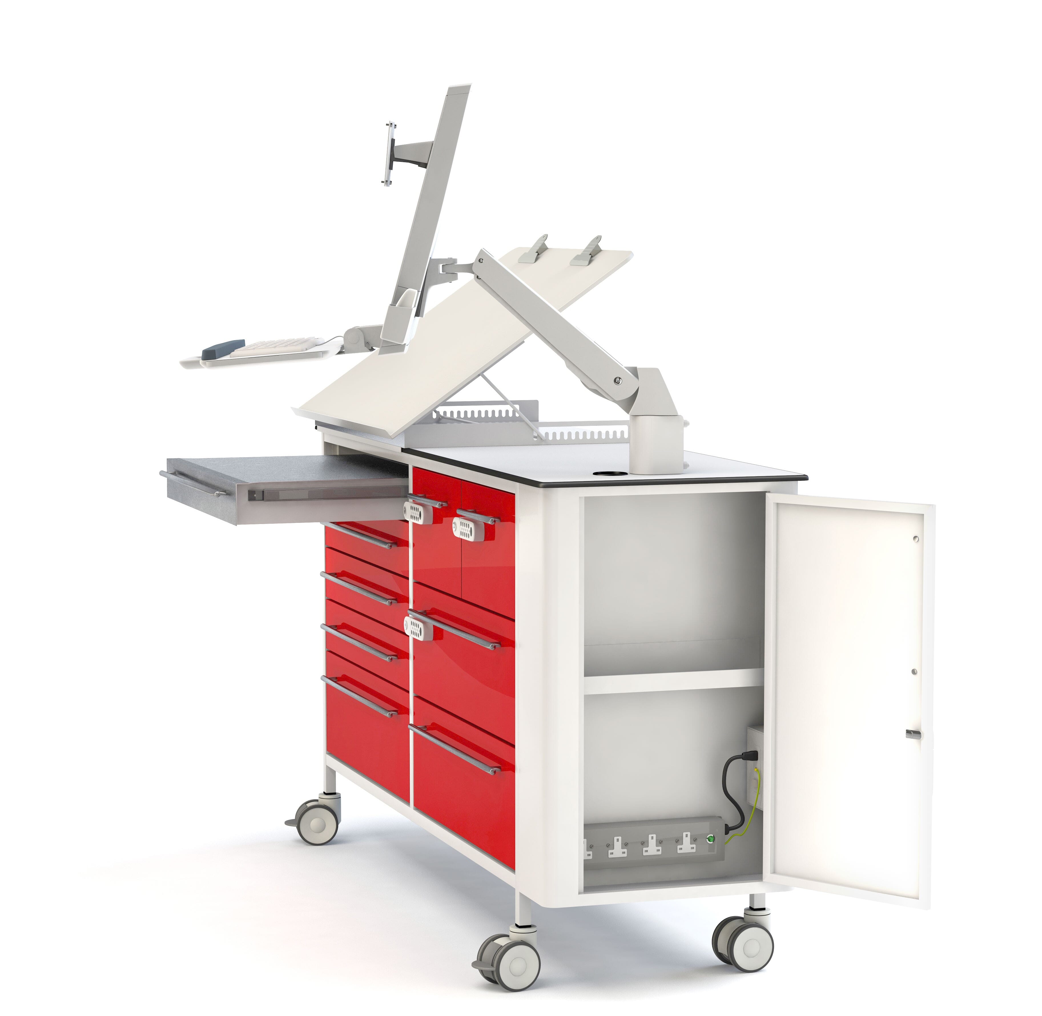 Double Column Custom Configurable Clinical Workstation Finished in Red