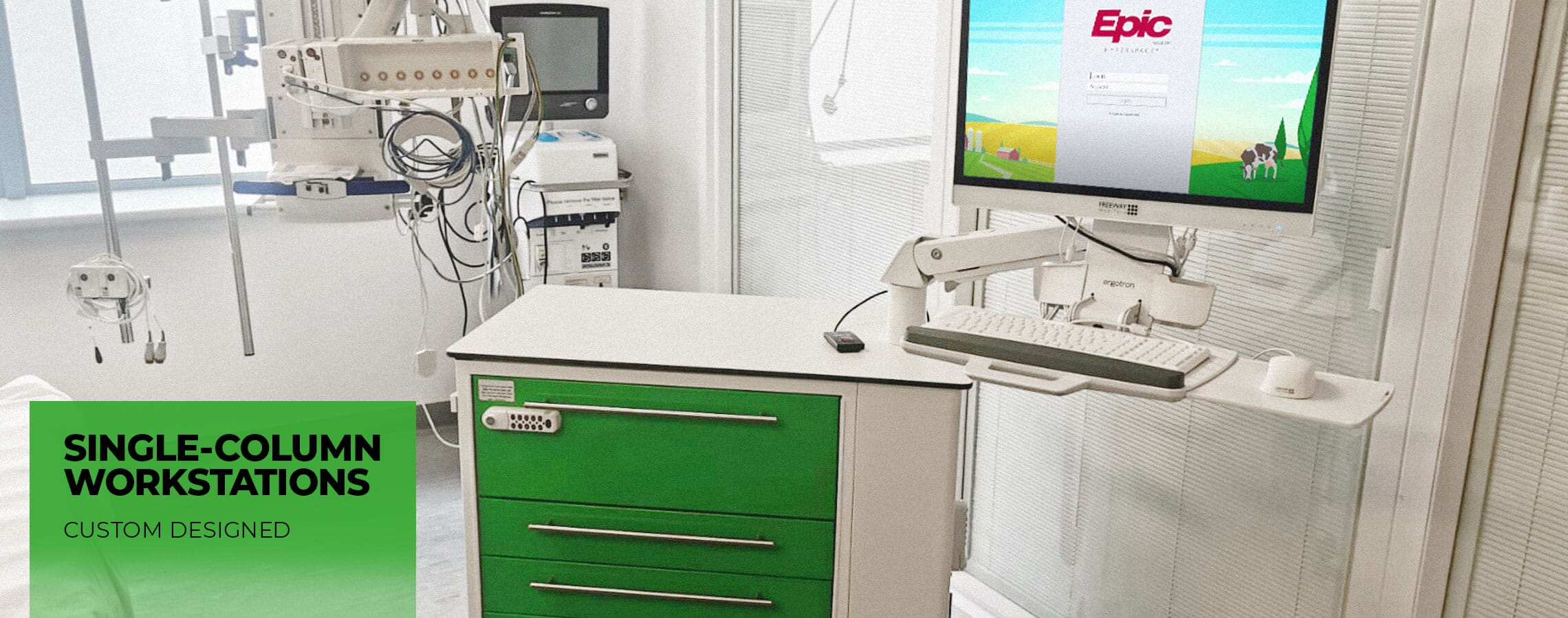 Single Column Custom Configurable Clinical Workstation Finished in Green