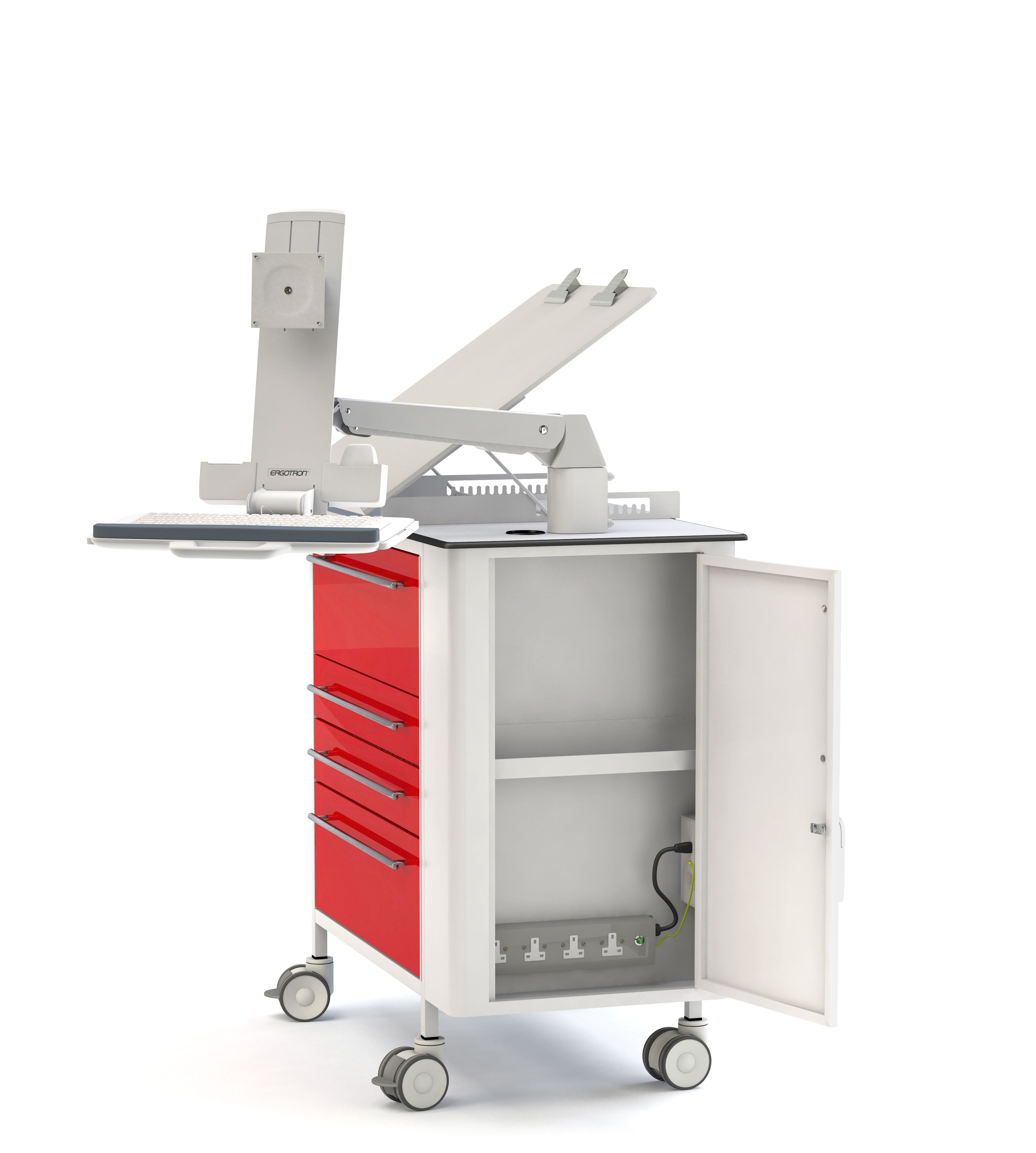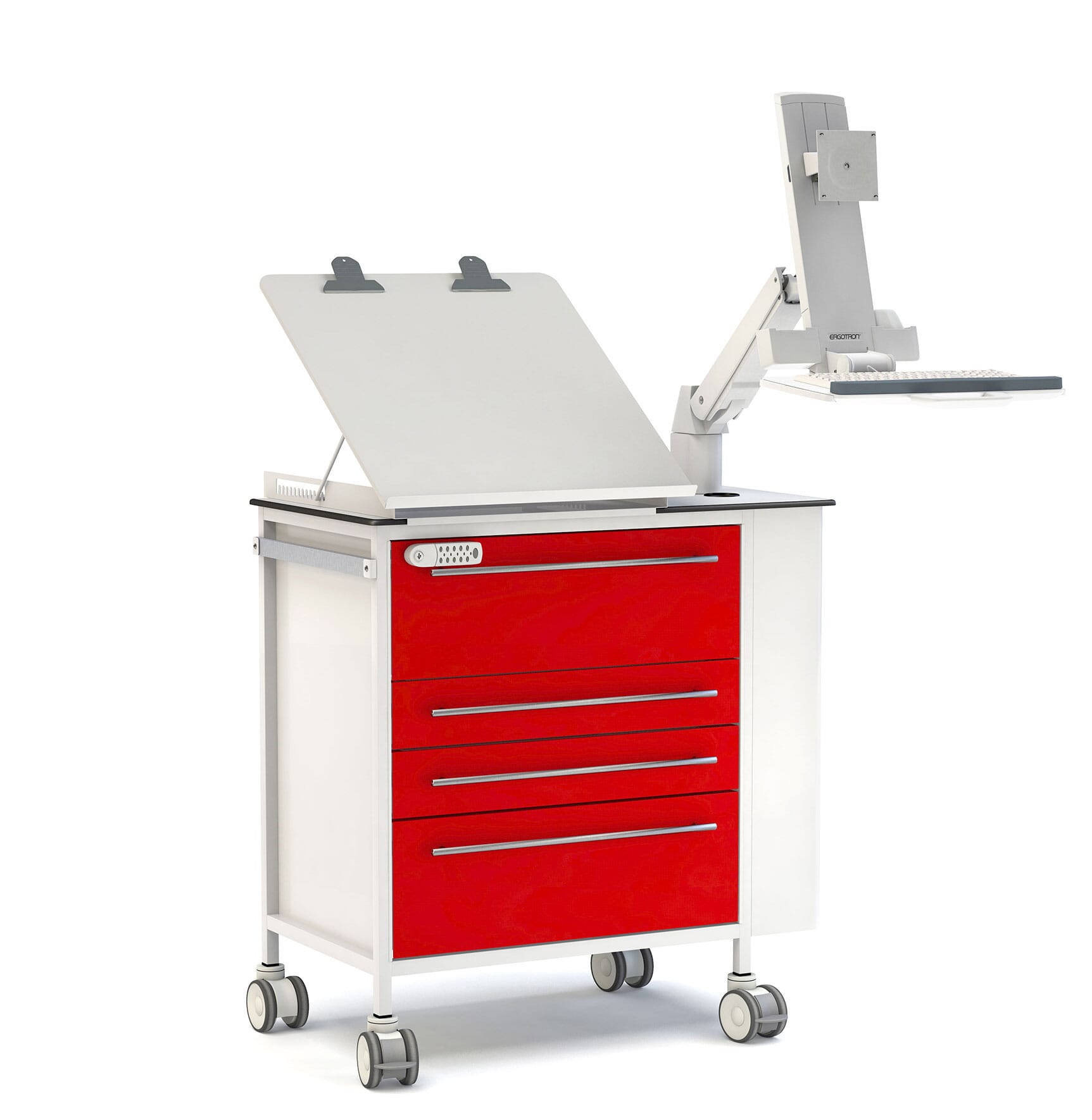 Single Column Custom Configurable Clinical Workstation Finished in Red