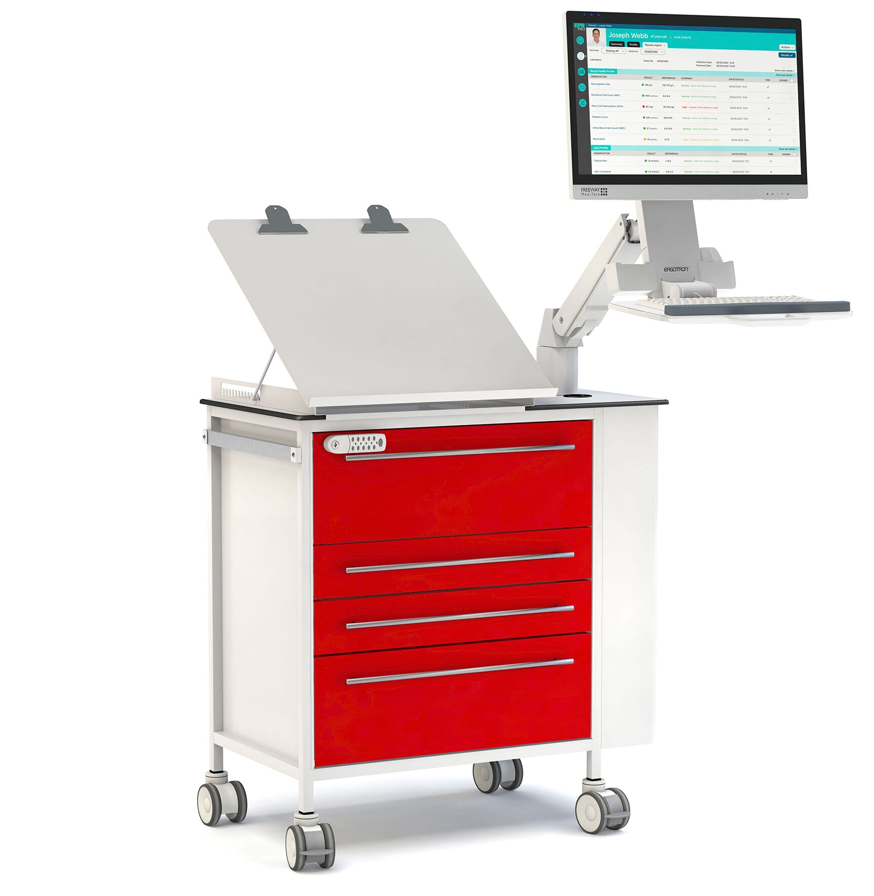 Single Column Custom Configurable Clinical Workstation Finished in Red