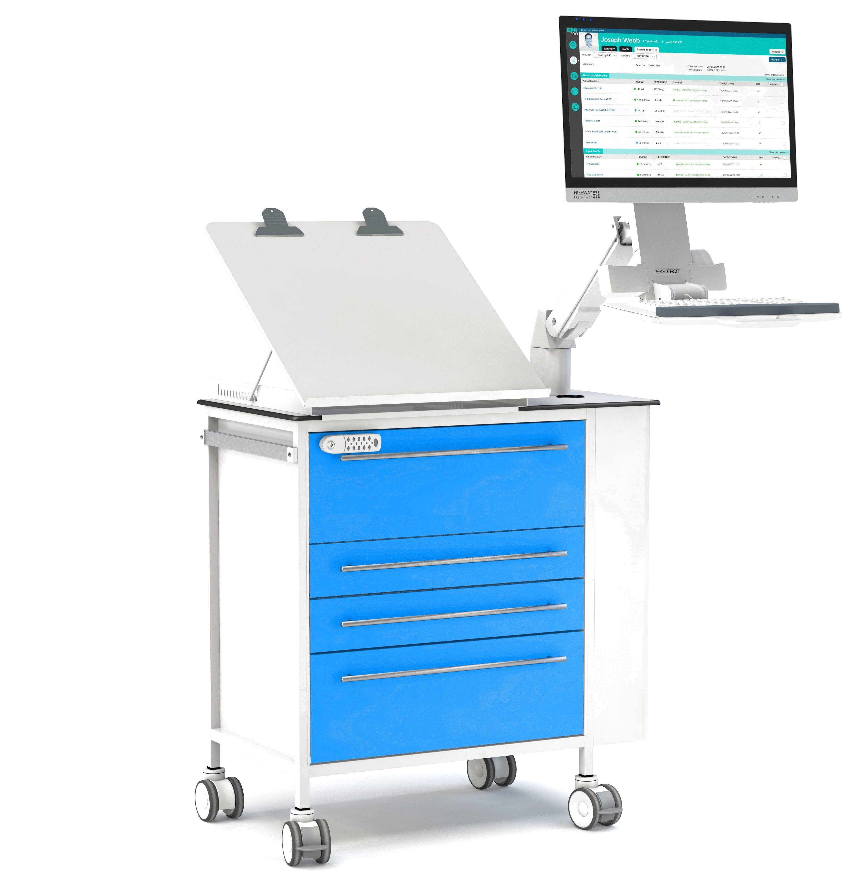 Single Column Custom Configurable Clinical Workstation Finished in Blue