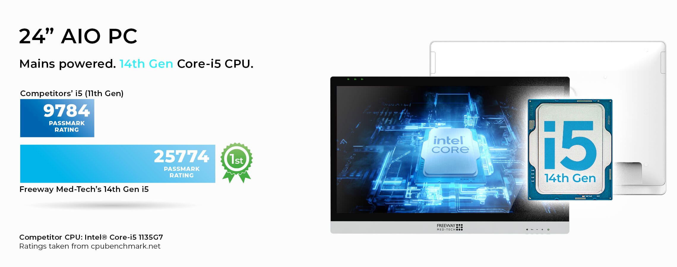 We use 14th gen Intel CPUs which have as many as 4 times the number of cores compared with similar AIOs from other manufacturers.