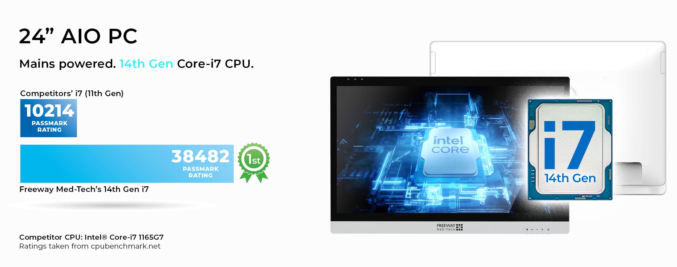 We use 14th gen Intel CPUs which have as many as 4 times the number of cores compared with similar AIOs from other manufacturers.