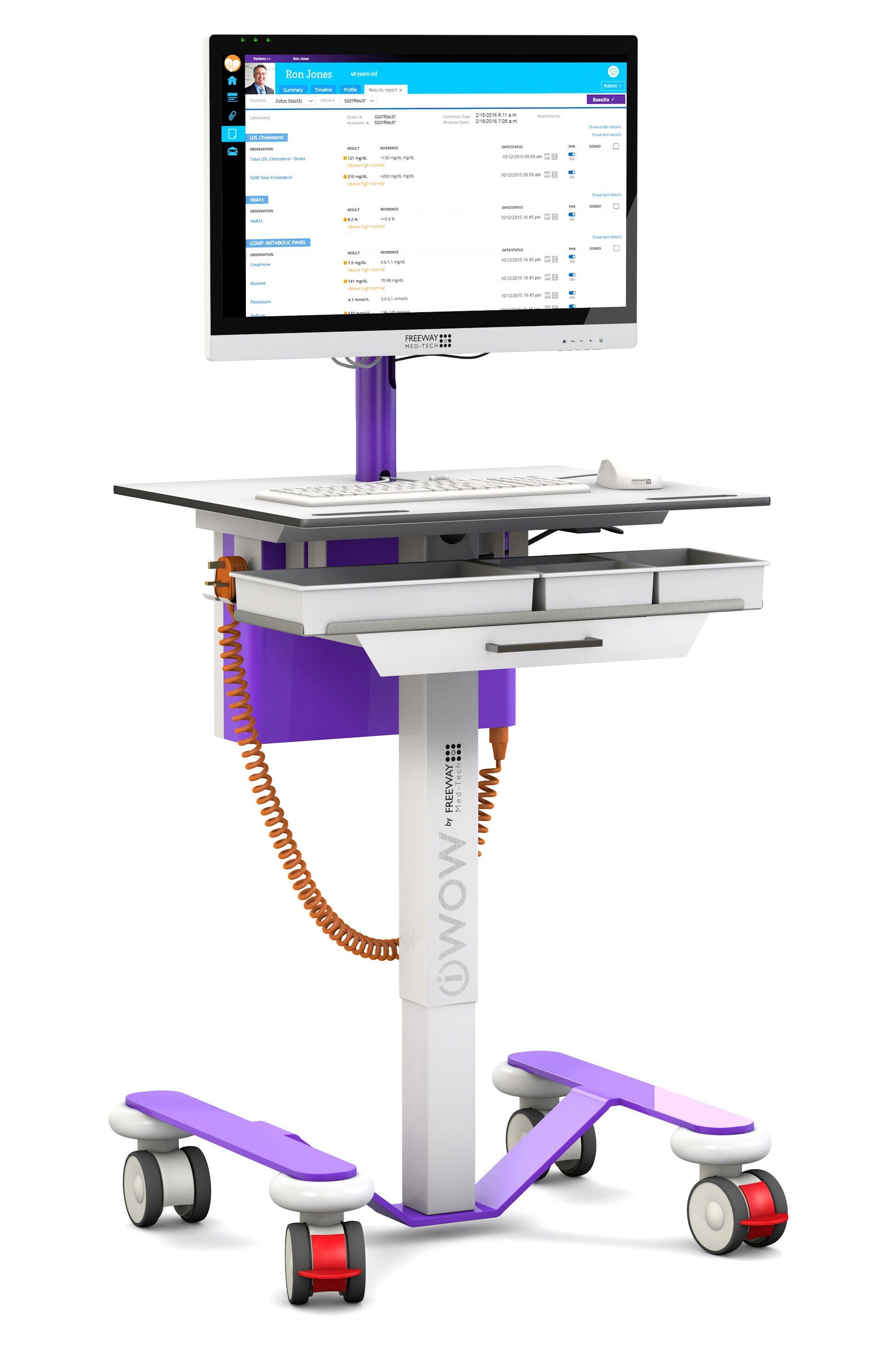iWOW® PLUS cart supplied including Medical Grade Monitor - Based upon our original iWOW®, the iWOW® Plus brings in a keyboard shelf and a configurable storage drawer bank. This opens up so many more possibilities for how the cart can be used. Comes with the MT700 clinical grade monitor with full HD display and Dual DC outs that can power peripheral devices such as Computers and Printers, and includes all cables as well as the 3 x integrated batteries, providing long running times / fast charging and very low cost in years to come to replace the batteries.